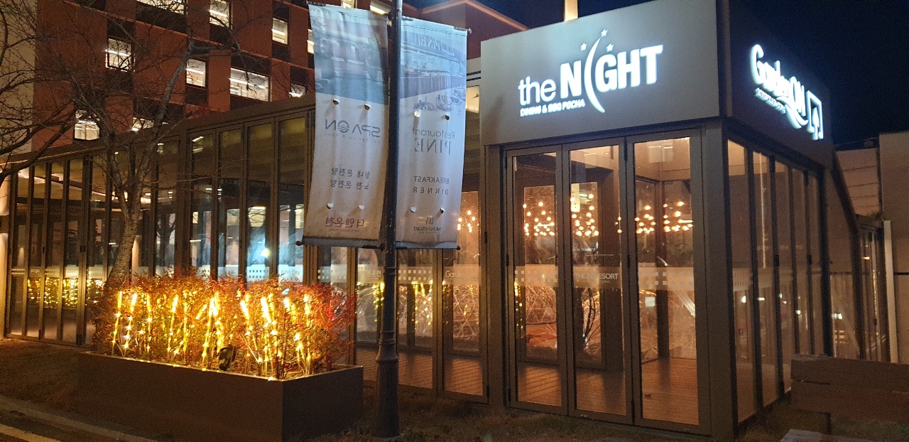 밤에 리조트의 광경은 심히 아름다웠다 !